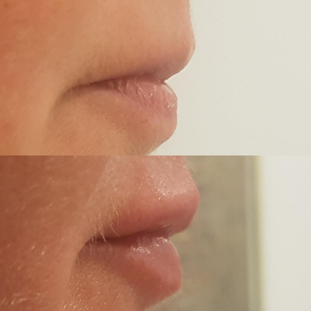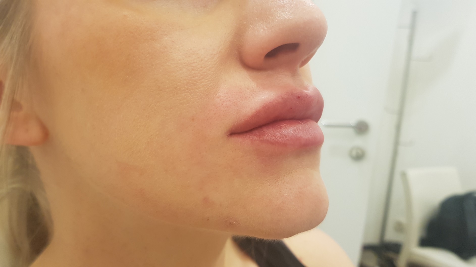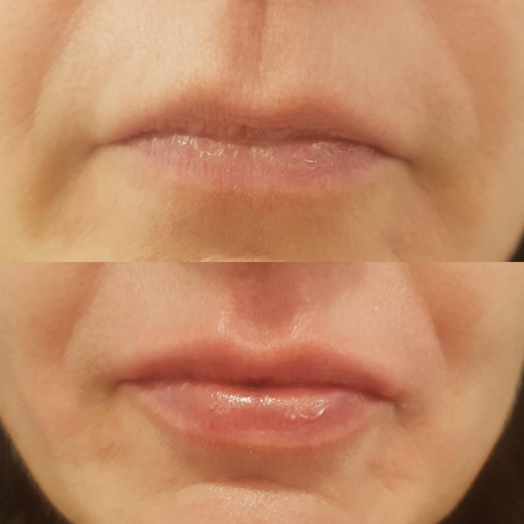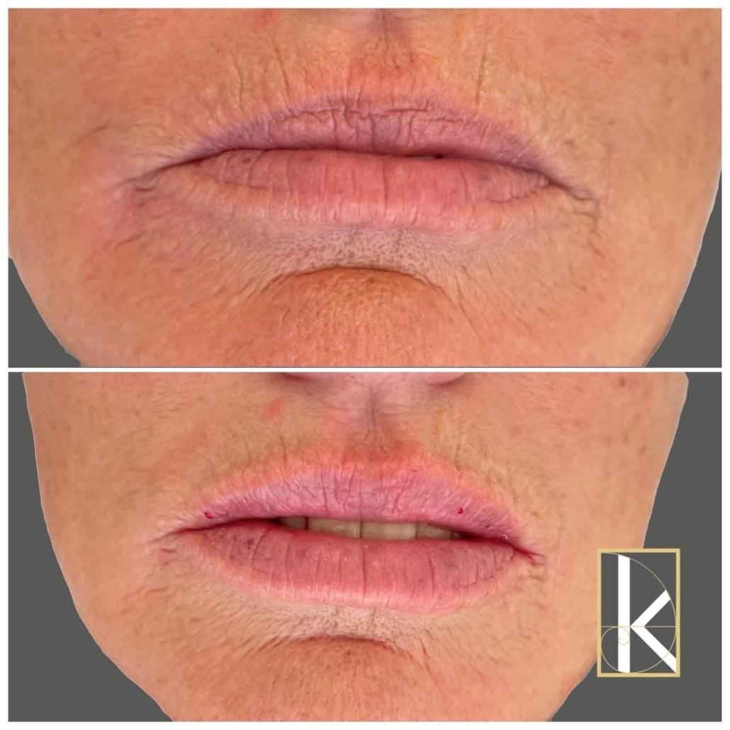 - Unterspritzen der Lippe und Volumenaufbau der Lippe