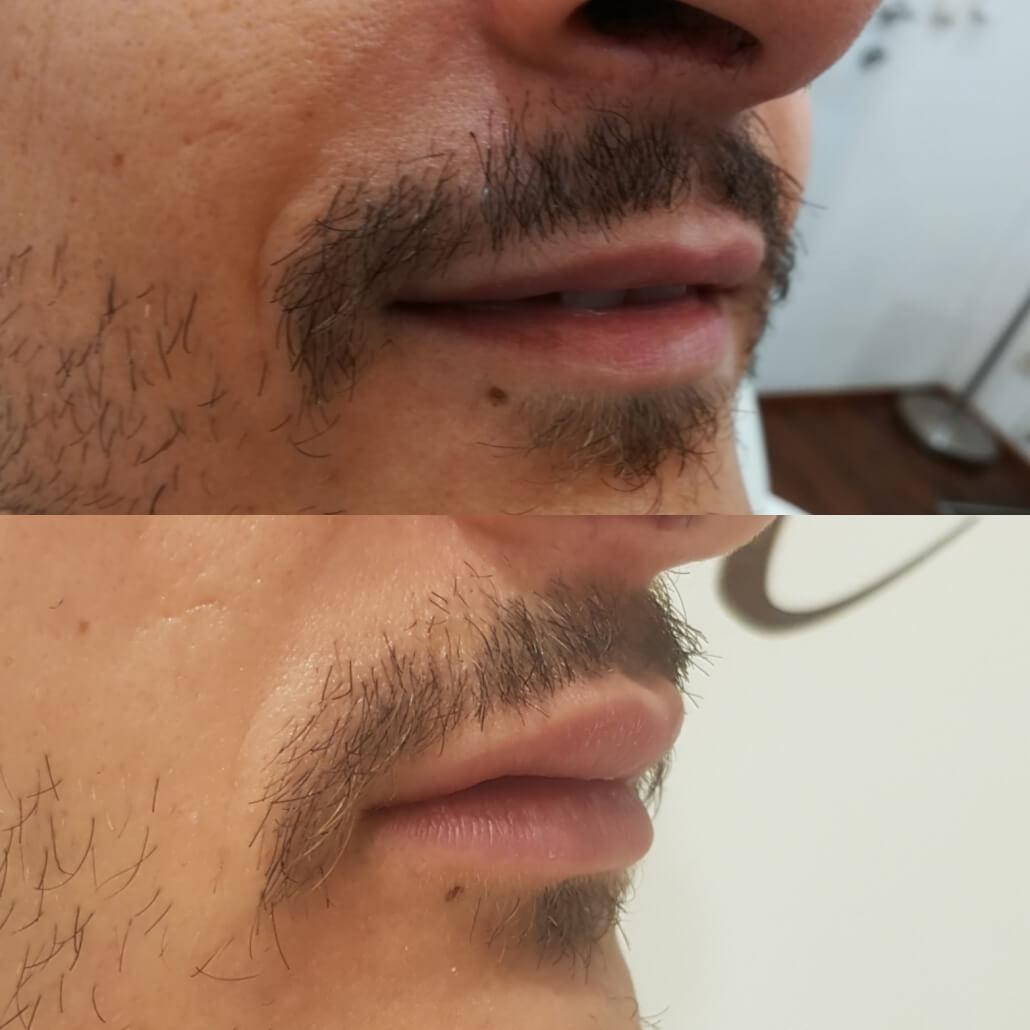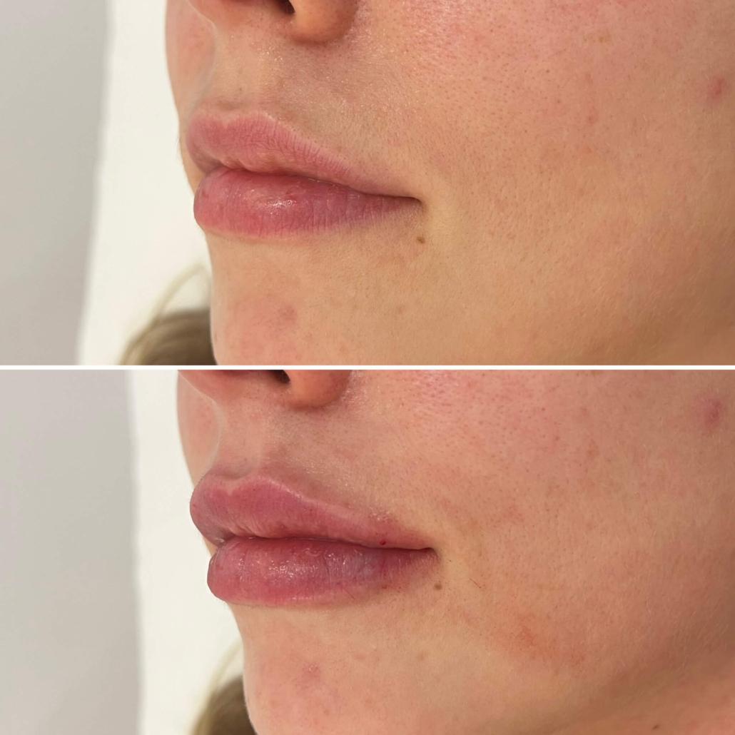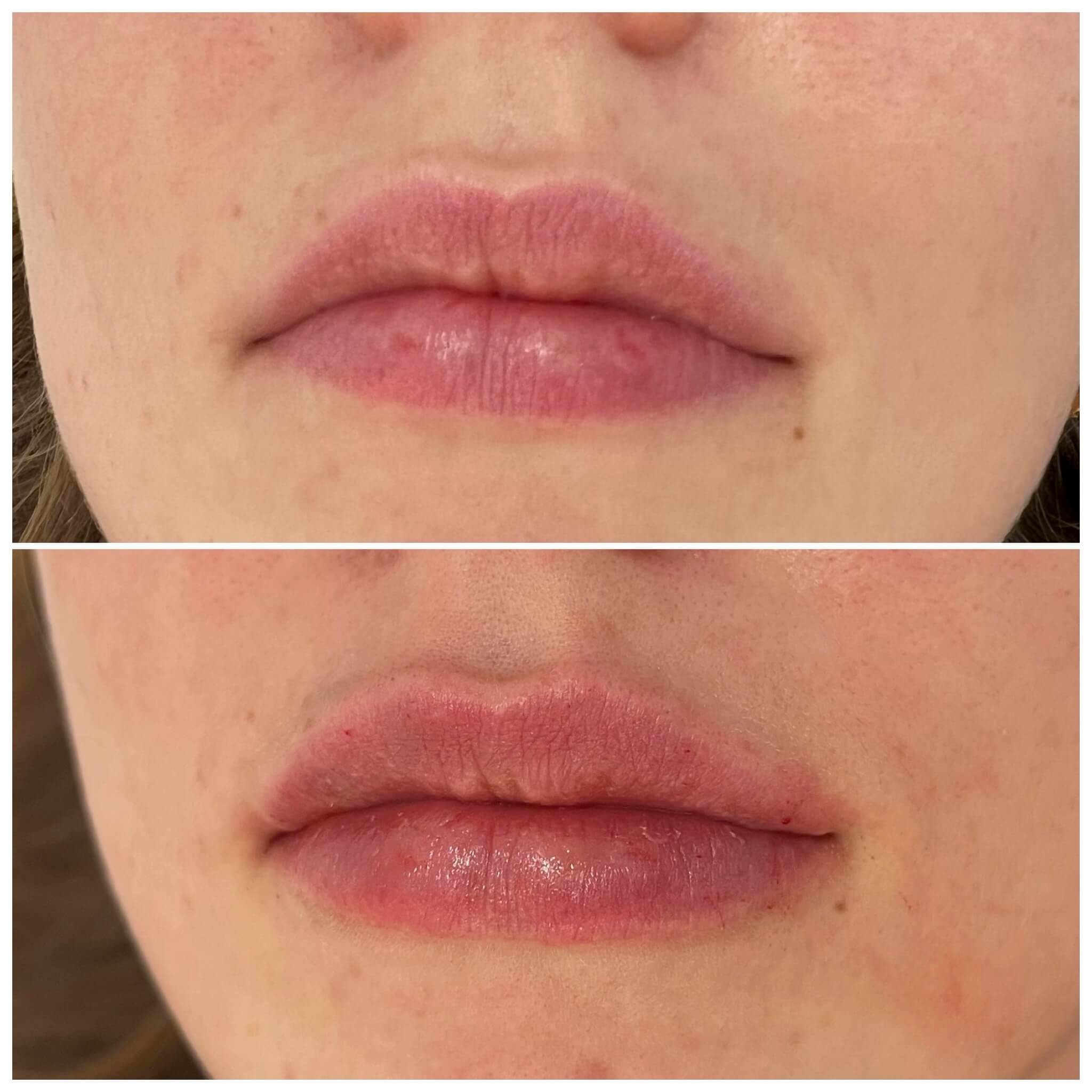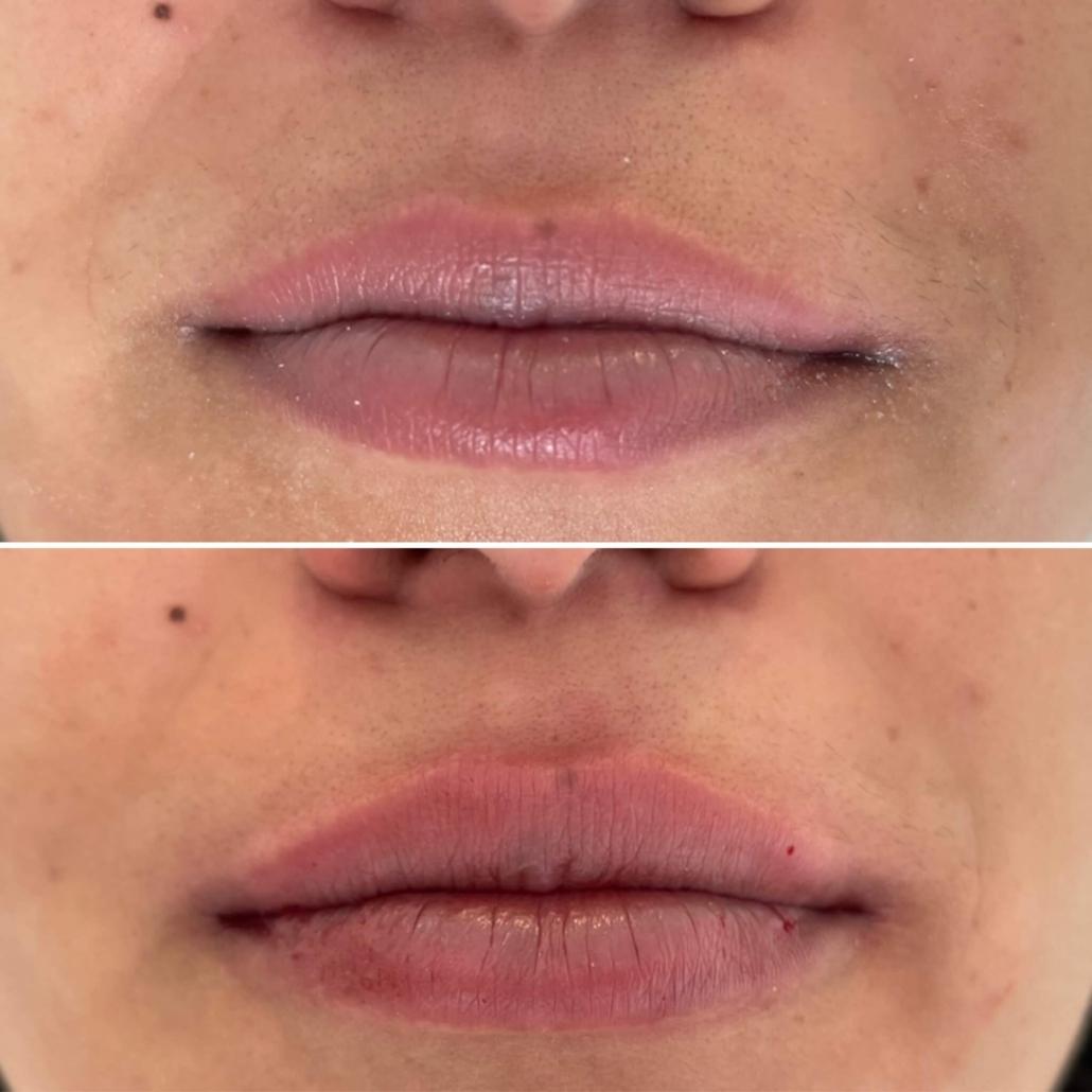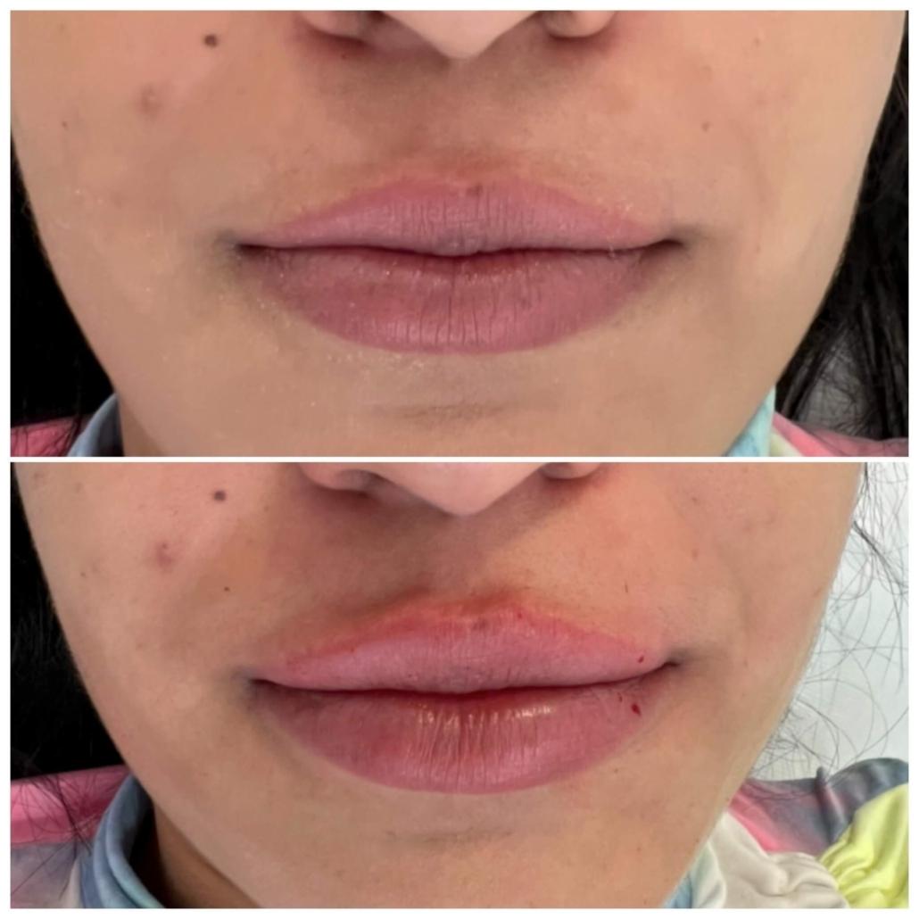 - Unterspritzen der Lippe und Volumenaufbau der Lippe