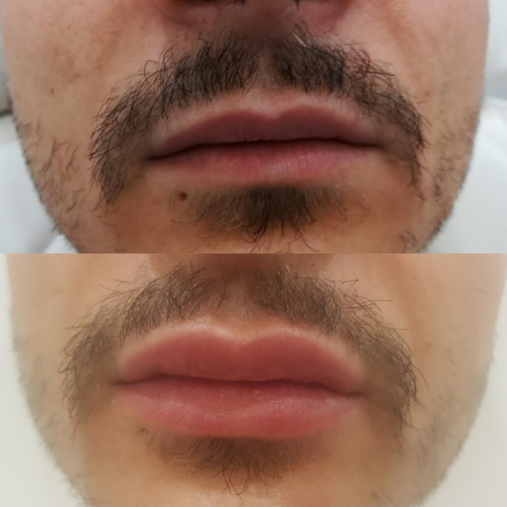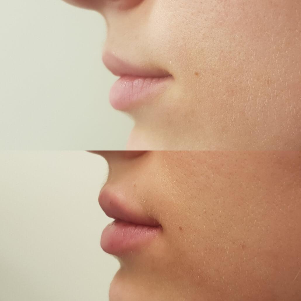 Die verabreichte Hyaluronsäure kann die Lippenkonturen definieren und/oder das Lippenrot zum Vorschein bringen. Durch die Unterspritzung der Konturen dreht sich die Lippe etwas nach außen. Das Aufspritzen der Lippe selbst erhöht das Lippenvolumen und bringt so volle Lippen.
